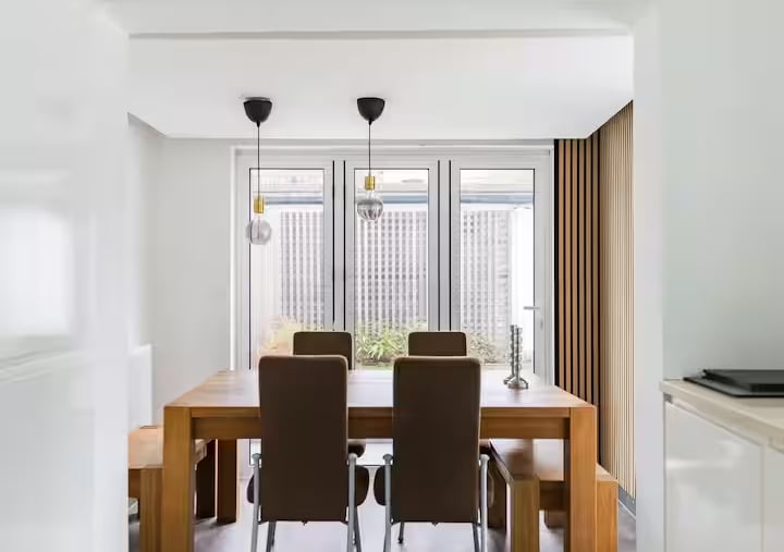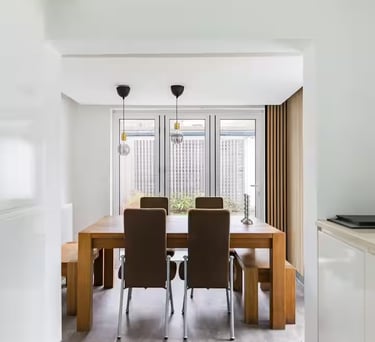 Each bedroom has been carefully designed to provide privacy, comfort and style, offering a quiet retreat after a day exploring London. The interiors feature bespoke furniture, contemporary details and natural light that highlights the refined atmosphere throughout the home.