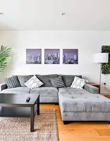 Step inside a beautifully designed space where sophisticated décor meets modern comfort. Each bedroom offers a tranquil retreat, featuring plush bedding, stylish details and natural light for a truly restful night’s sleep. The open plan living area invites relaxation and connection, complete with a sleek sofa, smart TV and a dining space ideal for enjoying home-cooked meals or morning coffee before exploring the city.